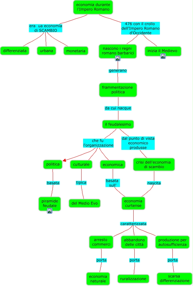 Questa Cmap, creata con IHMC CmapTools, contiene informazioni relative a: dall'economia di scambio a quella di sussistenza, nascono i regni romano barbarici generano frammentazione politica, abbandono delle città porta ruralizzazione, produzione per autosufficienza porta scarsa differenziazione, economia durante l'Impero Romano era ua economia di SCAMBIO differenziata, il feudalesimo che fu l'organizzazione culturale, crisi dell'economia di scambio nascita economia curtense, economia durante l'Impero Romano 476 con il crollo dell'Impero Romano d'Occidente nascono i regni romano barbarici, economia curtense caratterizzata abbandono delle città, frammentazione politica da cui nacque il feudalesimo, economia durante l'Impero Romano era ua economia di SCAMBIO monetaria, economia curtense caratterizzata produzione per autosufficienza, culturale tipica del Medio Evo, economia durante l'Impero Romano era ua economia di SCAMBIO urbana, il feudalesimo dal punto di vista economico produsse crisi dell'economia di scambio, il feudalesimo che fu l'organizzazione politica, economia curtense caratterizzata arresto commerci, politica basata piramide feudale, arresto commerci porta economia naturale, economia durante l'Impero Romano 476 con il crollo dell'Impero Romano d'Occidente inizia il Medievo, il feudalesimo che fu l'organizzazione economica