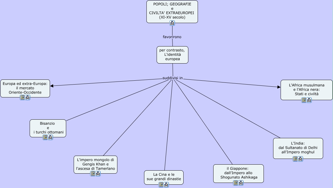 Questa Cmap, creata con IHMC CmapTools, contiene informazioni relative a: POPOLI GEOGRAFIE e CIVILTA' EXTRAEUROPEI, per contrasto, L'identità europea suddivisi in L'India: dal Sultanato di Delhi all'Impero moghul, POPOLI; GEOGRAFIE e CIVILTA' EXTRAEUROPEI (XI-XV secolo) favorirono per contrasto, L'identità europea, per contrasto, L'identità europea suddivisi in La Cina e le sue grandi dinastie, per contrasto, L'identità europea suddivisi in L'impero mongolo di Gengis Khan e l'ascesa di Tamerlano, per contrasto, L'identità europea suddivisi in L'Africa musulmana e l'Africa nera: Stati e civiltà, per contrasto, L'identità europea suddivisi in il Giappone: dall'Impero allo Shogunato Ashikaga, per contrasto, L'identità europea suddivisi in Europa ed extra-Europa: il mercato Oriente-Occidente, per contrasto, L'identità europea suddivisi in Bisanzio e i turchi ottomani