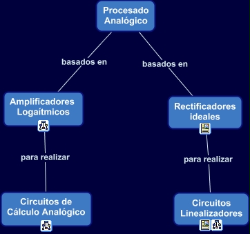 Este Cmap, tiene información relacionada con: 1.- Procesado Analógico, Procesado Analógico basados en Rectificadores ideales, Amplificadores Logaítmicos para realizar Circuitos de Cálculo Analógico, Rectificadores ideales para realizar Circuitos Linealizadores, Procesado Analógico basados en Amplificadores Logaítmicos