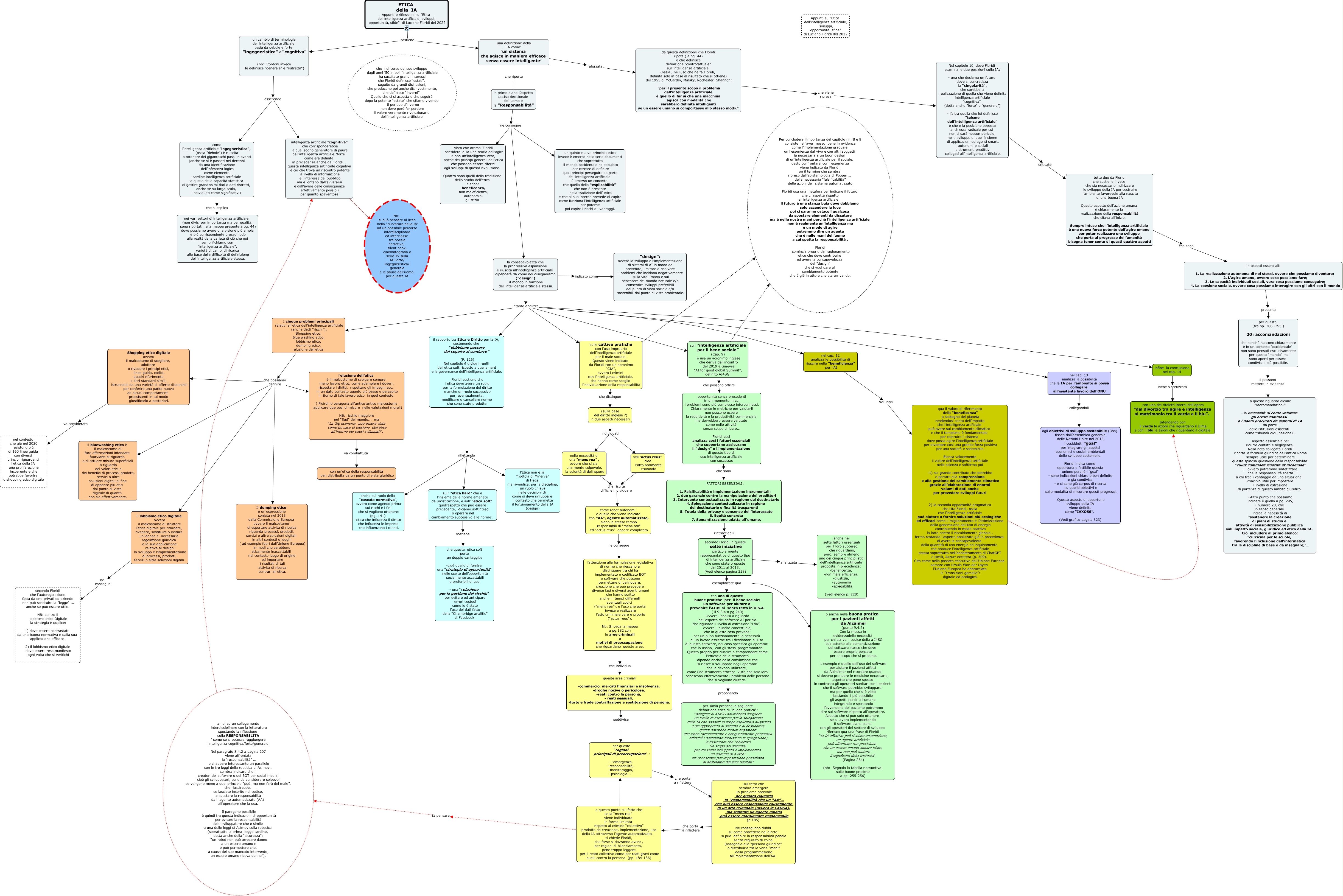 Questa Cmap, creata con IHMC CmapTools, contiene informazioni relative a: ETICA ed IA Floridi, ETICA della IA Appunti e riflessioni su "Etica dell’intelligenza artificiale, sviluppi, opportunità, sfide" di Luciano Floridi del 2022 sostiene una definizione della IA come: "un sistema che agisce in maniera efficace senza essere intelligente”, la consapevolezza che la progressiva espansione e riuscita all’intelligenza artificiale dipenderà da come noi disegneremo ("design") il mondo in funzione dell’intelligenza artificiale stessa. intanto analizza sull' “intelligenza artificiale per il bene sociale” (Cap. 9) e usa un acronimo inglese che deriva dall’incontro del 2019 a Ginevra "AI for good global Summit”, definito AI4SG., secondo Floridi in queste sette iniziative particolarmente rappresentative di questo tipo di intelligenza artificiale che sono state proposte dal 2011 al 2018. (Vedi elenco pagina 228) esemplificate qua o anche nella buona pratica per i pazienti affetti da Alzaimer (punto 9.4.7) Con la messa in evidenzadella necessità per chi scrive il codice della a I4SG stia attento alla semantizzazione del software stesso che deve essere proprio pensato per lo scopo che si propone. L’esempio è quello dell’uso del software per aiutare il pazienti affetti da Alzheimer nel ricordare quando si devono prendere le medicine necessarie, aspetto che pone spesso in contrasto gli operatori sanitari con i pazienti che il software potrebbe sviluppare ma per quello che si è visto lasciando il più possibile gli aspetti epatici all’umano integrando e spostando l’avversione del paziente potremmo dire sul software rispetto all’operatore. Aspetto che si può solo ottenere se si lavora implementando il software piano piano con gli operatori del settore di sviluppo riferisco qua una frase di Floridi “la IA affettiva può rivelare un’emozione, un agente artificiale può affermare con precisione che un essere umano appare triste, ma non può mutare il significato della tristezza“. (Pagina 254) (nb: Segnalo la tabella riassuntiva sulle buone pratiche a pp. 255-256), sulle cattive pratiche con l’uso improprio dell’intelligenza artificiale per il male sociale. Questo viene indicato da Floridi con un acronimo "CIA", ovvero i crimini con l’intelligenza artificiale, che hanno come scoglio l’individuazione della responsabilità Per concludere l’importanza del capitolo nn. 8 e 9 consiste nell’aver messo bene in evidenza come l’implementazione graduale on l’esperienza dal vivo e con altri soggetti ia necessaria a un buon design di un’intelligenza artificiale per il sociale. uesto confrontarsi con l’esperienza viene indicato da Floridi on il termine che sembra ripreso dall’epistemologia di Popper … della necessaria “falsificabilità” delle azioni del sistema automatizzato. Floridi usa una metafora per indicare il futuro che ci aspetta rispetto all’intelligenza artificiale . il futuro è una stanza buia dove dobbiamo solo accendere la luce poi ci saranno ostacoli qualcosa da spostare elementi da discutere ma è nelle nostre mani perché l’intelligenza artificiale non è realmente un’intelligenza ma è un modo di agire potremmo dire un agente che è nelle mani dell’uomo a cui spetta la responsabilità . Floridi comincia proprio dal ragionamento etico che deve contribuire ed avere la consapevolezza del "design" che si vuol dare al cambiamento potente che è già in atto e che sta arrivando., una definizione della IA come: "un sistema che agisce in maniera efficace senza essere intelligente” raforzata da questa definizione che Floridi ripota ( a pg. 44) e che definisce definizione "controfattuale" sull’intelligenza artificiale (ossia , nell’uso che ne fa Floridi, definita solo in base al risultato che si ottiene) del 1955 di McCarthy, Minsky, Rochester, Shannon: “per il presente scopo il problema dell’intelligenza artificiale è quello di far sì che una macchina agisca con modalità che sarebbero definite intelligenti se un essere umano si comportasse allo stesso modo.”, Nel capitolo 10, dove Floridi esamina le due posizioni sulla IA: - una che declama un futuro dove si concretizza la “singolarità“, che sarebbe la realizzazione di quella che viene definita intelligenza artificiale "cognitiva" (detta anche "forte" e "generale") - l’altra quella che lui definisce "teismo dell’intelligenza artificiale" e che è la posizione opposta anch’essa radicale per cui non ci sarà nessun pericolo nello sviluppo di quell’insieme di applicazioni ed agenti smart, autonomi e sociali e strumenti predittivi collegati all’intelligenza artificiale. criticate tutte due da Floridi che sostiene invece che sia necessario indirizzare lo sviluppo della IA per costruire l’ambiente favorevole alla nascita di una buona IA Questo aspetto dell’azione umana è chiaramente la realizzazione della responsabilità che citava all’inizio. Sempre inteso che l’intelligenza artificiale è una nuova forza potente dell’agire umano per poter realizzare uno sviluppo che porta al progresso dell’umanità bisogna tener conto di questi quattro aspetti, intelligenza artificiale "cognitiva" che corrisponderebbe a quel sogno generatore di paure dell’intelligenza artificiale "forte" come era definita in precedenza anche da Floridi… questa intelligenza artificiale cognitiva è ciò che trova un riscontro potente a livello di informazione e l’interesse del pubblico ma è lontano dall’avverarsi e dall’avere delle conseguenze effettivamente possibili per quanto spaventose. Nb: si può pensare al liceo nella "curvatura della Ia" ad un possibile percorso interdisciplinare ed interclasse tra poesia narrativa, silent book, cinematografia e serie Tv sulla IA Forte/ ingegneristica/ generale e le paure dell'uomo per questa IA, Il lobbismo etico digitale ovvero il malcostume di sfruttare l’etica digitale per ritardare, rivedere, sostituire o evitare un’idonea e 