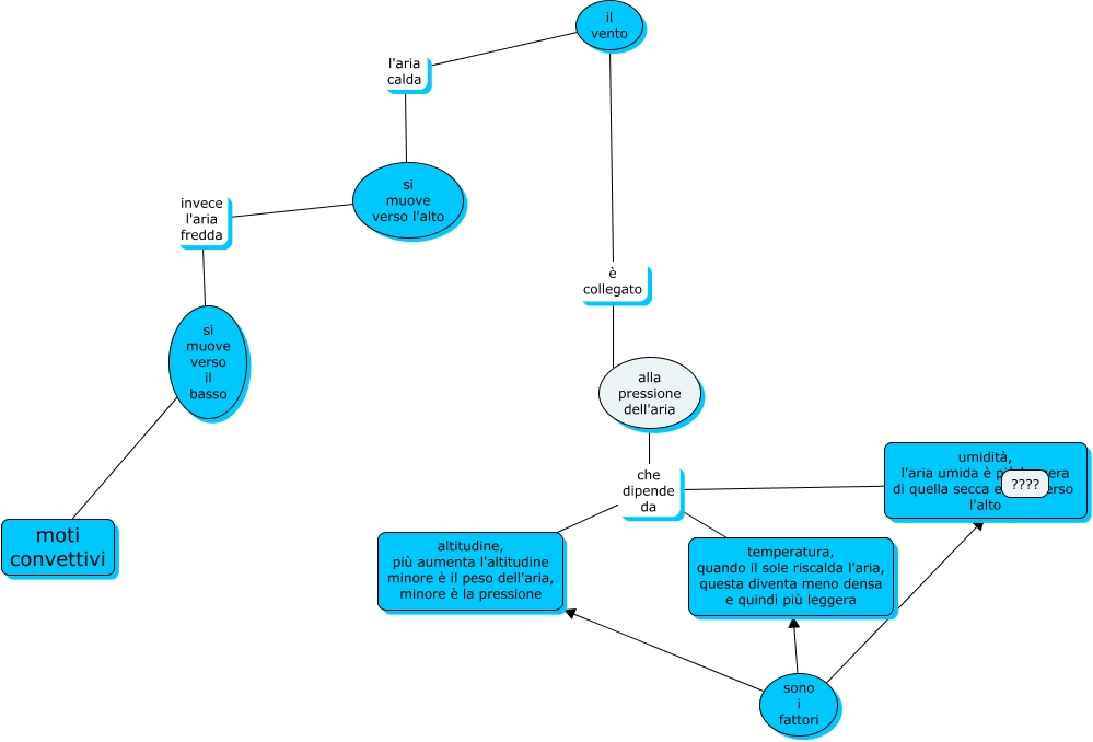 Questa Cmap, creata con IHMC CmapTools, contiene informazioni relative a: il vento Evan lorenzo, alla pressione dell'aria che dipende da ????, il vento è collegato alla pressione dell'aria, si muove verso il basso ???? moti convettivi, sono i fattori ???? altitudine, più aumenta l'altitudine minore è il peso dell'aria, minore è la pressione, sono i fattori ???? umidità, l'aria umida è più leggera di quella secca e sale verso l'alto, si muove verso l'alto invece l'aria fredda si muove verso il basso, sono i fattori ???? temperatura, quando il sole riscalda l'aria, questa diventa meno densa e quindi più leggera, il vento l'aria calda si muove verso l'alto, alla pressione dell'aria che dipende da altitudine, più aumenta l'altitudine minore è il peso dell'aria, minore è la pressione, alla pressione dell'aria che dipende da temperatura, quando il sole riscalda l'aria, questa diventa meno densa e quindi più leggera