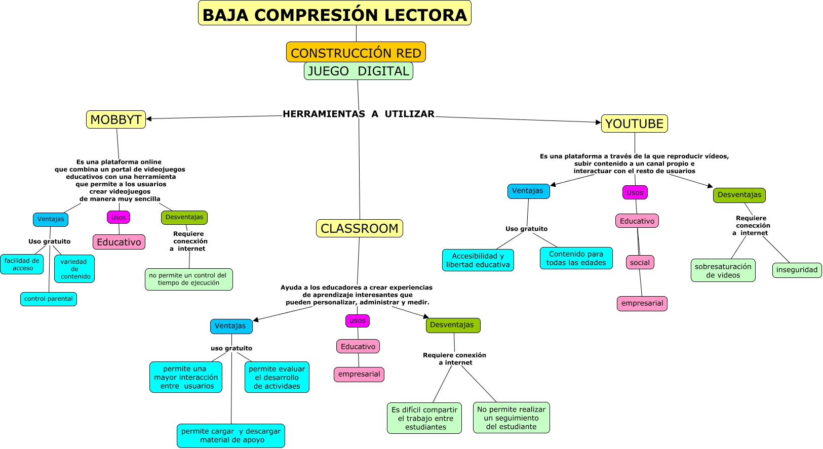 Este Cmap, tiene información relacionada con: image, CLASSROOM Ayuda a los educadores a crear experiencias de aprendizaje interesantes que pueden personalizar, administrar y medir. Desventajas, Educativo ???? empresarial, CONSTRUCCIÓN RED ???? JUEGO DIGITAL, Ventajas Uso gratuito variedad de contenido, Usos ???? Educativo, Usos ???? Educativo, CONSTRUCCIÓN RED BAJA COMPRESIÓN LECTORA, Desventajas Requiere conecxión a internet inseguridad, Ventajas uso gratuito permite una mayor interacción entre usuarios, Ventajas uso gratuito permite evaluar el desarrollo de actividaes, Desventajas Requiere conexión a internet No permite realizar un seguimiento del estudiante, CLASSROOM Ayuda a los educadores a crear experiencias de aprendizaje interesantes que pueden personalizar, administrar y medir. usos, CLASSROOM Ayuda a los educadores a crear experiencias de aprendizaje interesantes que pueden personalizar, administrar y medir. Ventajas, MOBBYT Es una plataforma online que combina un portal de videojuegos educativos con una herramienta que permite a los usuarios crear videojuegos de manera muy sencilla Usos, Desventajas Requiere conecxión a internet sobresaturación de videos, usos ???? Educativo, CONSTRUCCIÓN RED HERRAMIENTAS A UTILIZAR CLASSROOM, YOUTUBE Es una plataforma a través de la que reproducir vídeos, subir contenido a un canal propio e interactuar con el resto de usuarios Ventajas, usos ???? empresarial, MOBBYT Es una plataforma online que combina un portal de videojuegos educativos con una herramienta que permite a los usuarios crear videojuegos de manera muy sencilla Desventajas