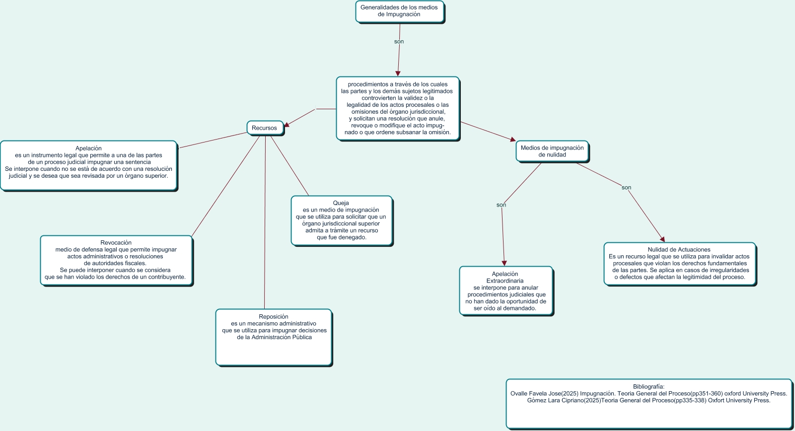 Este Cmap, tiene información relacionada con: generalidades de los medios de impugnacion, Medios de impugnación de nulidad son Apelación Extraordinaria se interpone para anular procedimientos judiciales que no han dado la oportunidad de ser oído al demandado., Recursos ???? Revocación medio de defensa legal que permite impugnar actos administrativos o resoluciones de autoridades fiscales. Se puede interponer cuando se considera que se han violado los derechos de un contribuyente., procedimientos a través de los cuales las partes y los demás sujetos legitimados controvierten la validez o la legalidad de los actos procesales o las omisiones del órgano jurisdiccional, y solicitan una resolución que anule, revoque o modifique el acto impug- nado o que ordene subsanar la omisión. ???? Medios de impugnación de nulidad, Medios de impugnación de nulidad son Nulidad de Actuaciones Es un recurso legal que se utiliza para invalidar actos procesales que violan los derechos fundamentales de las partes. Se aplica en casos de irregularidades o defectos que afectan la legitimidad del proceso., Generalidades de los medios de Impugnación son procedimientos a través de los cuales las partes y los demás sujetos legitimados controvierten la validez o la legalidad de los actos procesales o las omisiones del órgano jurisdiccional, y solicitan una resolución que anule, revoque o modifique el acto impug- nado o que ordene subsanar la omisión., procedimientos a través de los cuales las partes y los demás sujetos legitimados controvierten la validez o la legalidad de los actos procesales o las omisiones del órgano jurisdiccional, y solicitan una resolución que anule, revoque o modifique el acto impug- nado o que ordene subsanar la omisión. Recursos, Recursos ???? Reposición es un mecanismo administrativo que se utiliza para impugnar decisiones de la Administración Pública, Recursos ???? Apelación es un instrumento legal que permite a una de las partes de un proceso judicial impugnar una sentencia Se interpone cuando no se está de acuerdo con una resolución judicial y se desea que sea revisada por un órgano superior., Recursos ???? Queja es un medio de impugnación que se utiliza para solicitar que un órgano jurisdiccional superior admita a trámite un recurso que fue denegado.