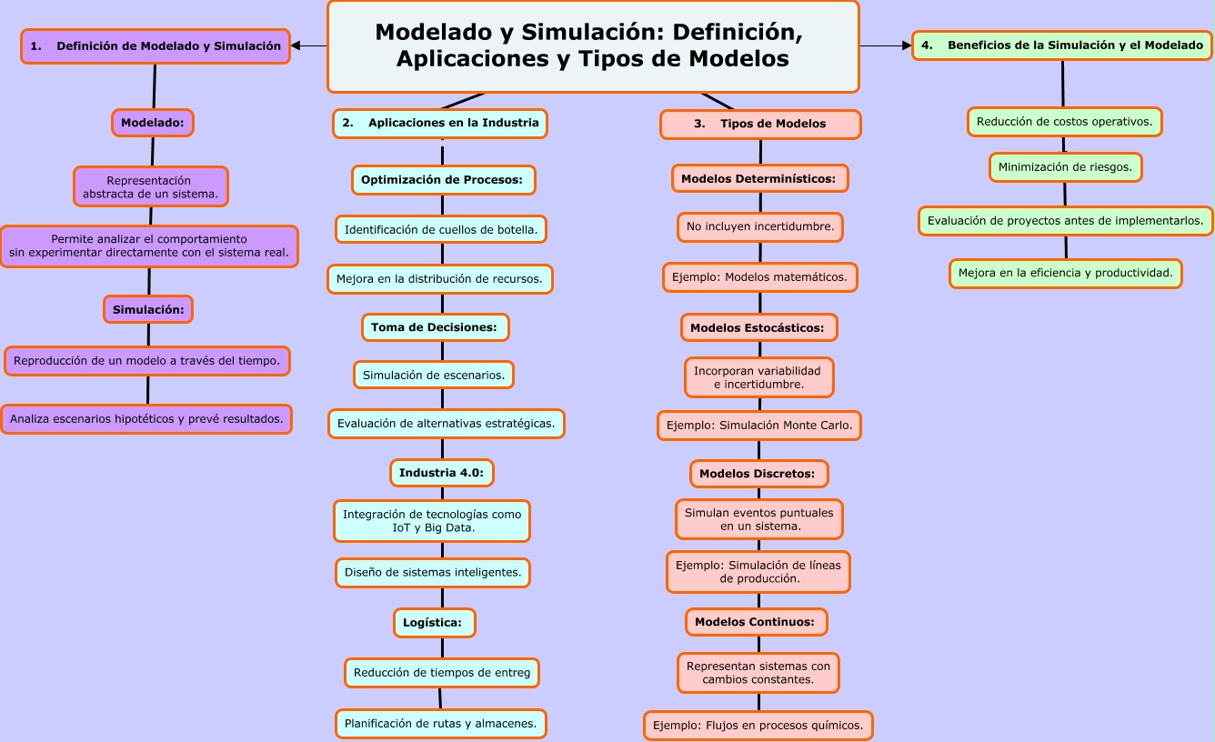 Este Cmap, tiene información relacionada con: Tarea 1 Apropiación de conceptos de modelado y simulación y software, Modelado y Simulación: Definición, Aplicaciones y Tipos de Modelos 3. Tipos de Modelos, Modelado y Simulación: Definición, Aplicaciones y Tipos de Modelos 1. Definición de Modelado y Simulación, 1. Definición de Modelado y Simulación ???? Analiza escenarios hipotéticos y prevé resultados., 2. Aplicaciones en la Industria Reducción de tiempos de entreg, Modelado y Simulación: Definición, Aplicaciones y Tipos de Modelos 2. Aplicaciones en la Industria, 4. Beneficios de la Simulación y el Modelado ???? Mejora en la eficiencia y productividad., Modelado y Simulación: Definición, Aplicaciones y Tipos de Modelos ???? 4. Beneficios de la Simulación y el Modelado, Reducción de tiempos de entreg Planificación de rutas y almacenes., 3. Tipos de Modelos ???? Ejemplo: Flujos en procesos químicos.