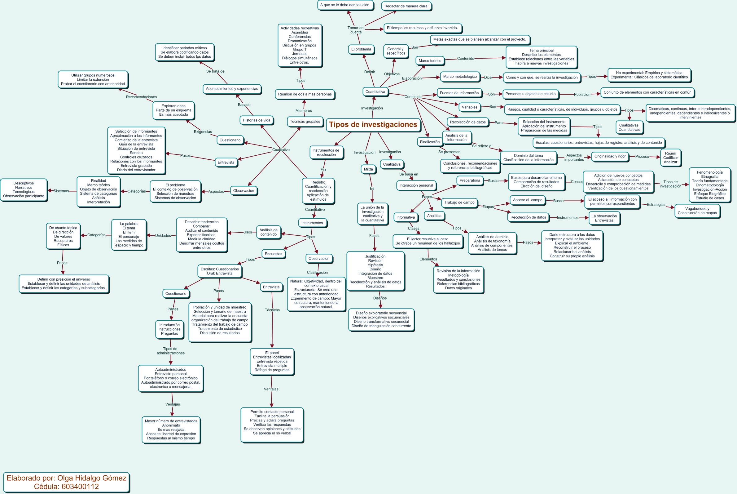 Este Cmap, tiene información relacionada con: Mapa mental investigación, Registro Cuantificación y recolección Aplicación de estímulos Cualitativo Historias de vida, Encuestas Tipos Escritas: Cuestionarios Oral: Entrevista, Entrevista Técnicas El panel Entrevistas localizadas Entrevista repetida Entrevista múltiple Ráfaga de preguntas, El problema Tomar en cuenta El tiempo,los recursos y esfuerzo invertido., Mixta Es La unión de la investigación cualitativa y la cuantitativa, Preparatoria Buscar Bases para desarrollar el tema Comparación de resultados Elección del diseño, Instrumentos Tipos Encuestas, El panel Entrevistas localizadas Entrevista repetida Entrevista múltiple Ráfaga de preguntas Ventajas Permite contacto personal Facilita la persuasión Precisa y aclara preguntas Verifica las respuestas Se observan opiniones y actitudes Se aprecia el no verbal, Entrevista Pasos Selección de informantes Aproximación a los informantes Comienzo de la entrevista Guía de la entrevista Situación de entrevista Sondeo Controles cruzados Relaciones con los informantes Entrevista grabada Diario del entrevistador, Originalidad y rigor Proceso Reunir Codificar Analizar, Cuantitativa Definir El problema, Tipos de investigaciones Investigación Cuantitativa, El acceso a l información con permisos correspondientes Estrategias Vagabundeo y Construcción de mapas, Como y con qué, se realiza la investigación Tipos No experimental: Empírica y sistemática Experimental: Clásicos de laboratorio científico, Recolección de datos Para Selección del instrumento Aplicación del instrumento Preparación de las medidas, De asunto tópico De dirección De valores Receptores Físicas Pasos Definir con presición el universo Establecer y definir las unidades de análisis Establecer y definir las categorías y subcategorías., Selección del instrumento Aplicación del instrumento Preparación de las medidas Tipos Escalas, cuestionarios, entrevistas, hojas de registro, análisis y de contenido, Recolección de datos Instrumentos La observación Entrevistas, Acceso al campo Busca El acceso a l información con permisos correspondientes, Instrumentos de recolección Fin Registro Cuantificación y recolección Aplicación de estímulos