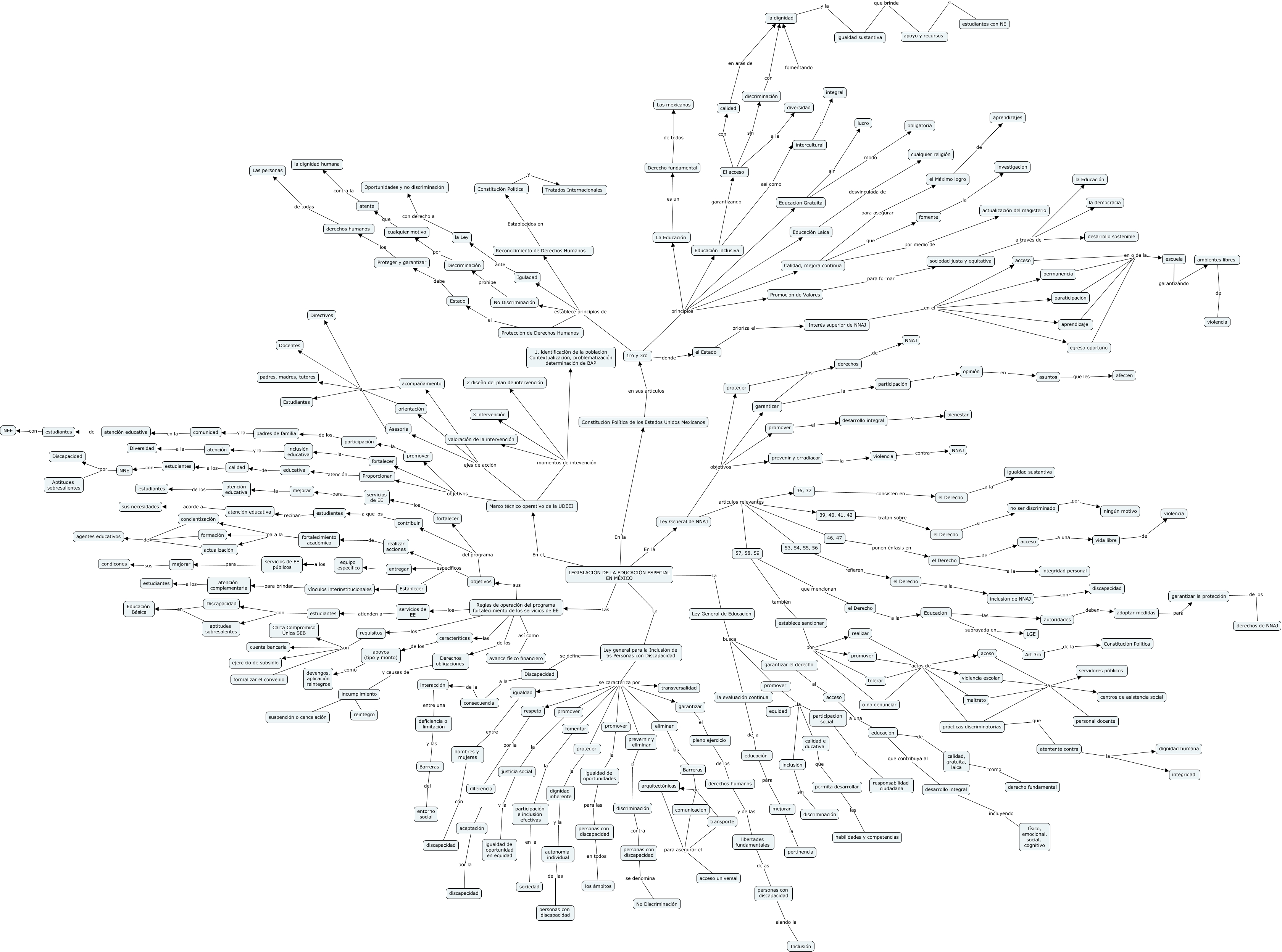 Este Cmap, tiene información relacionada con: Legislación de la EE en México, orientación a Estudiantes, tolerar actos de acoso, asuntos que les afecten, promover la equidad, realizar actos de acoso, El acceso a la diversidad, Proporcionar atención educativa, Ley general para la Inclusión de las Personas con Discapacidad se caracteriza por respeto, Interés superior de NNAJ en el egreso oportuno, El acceso sin discriminación, Marco técnico operativo de la UDEEI objetivos Proporcionar, diversidad fomentando la dignidad, Ley general para la Inclusión de las Personas con Discapacidad se caracteriza por proteger, Proteger y garantizar los derechos humanos, educación de calidad, gratuita, laica, permita desarrollar las habilidades y competencias, requisitos son ejercicio de subsidio, requisitos son Carta Compromiso Única SEB, Ley General de NNAJ artículos relevantes 46, 47, prácticas discriminatorias a servidores públicos