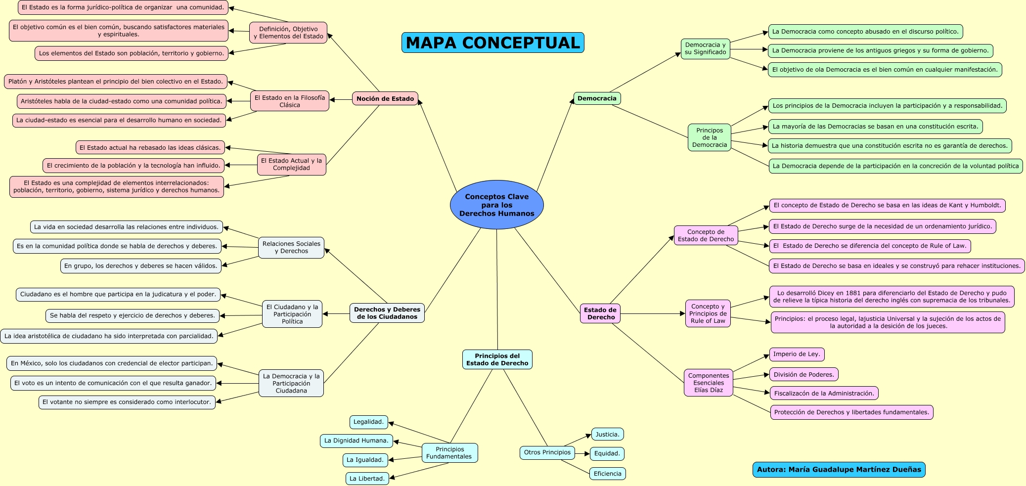 Este Cmap, tiene información relacionada con: Conceptos Claves para los Derechos Humanos, Principios Fundamentales La Libertad., Componentes Esenciales Elías Díaz Imperio de Ley., Concepto de Estado de Derecho El Estado de Derecho surge de la necesidad de un ordenamiento jurídico., Conceptos Clave para los Derechos Humanos Noción de Estado, Noción de Estado El Estado en la Filosofía Clásica, El Ciudadano y la Participación Política Se habla del respeto y ejercicio de derechos y deberes., Conceptos Clave para los Derechos Humanos Estado de Derecho, Relaciones Sociales y Derechos La vida en sociedad desarrolla las relaciones entre individuos., Principios Fundamentales La Igualdad., Otros Principios Justicia., Democracia Democracia y su Significado, La Democracia y la Participación Ciudadana El voto es un intento de comunicación con el que resulta ganador., Noción de Estado El Estado Actual y la Complejidad, Concepto de Estado de Derecho El concepto de Estado de Derecho se basa en las ideas de Kant y Humboldt., Definición, Objetivo y Elementos del Estado El objetivo común es el bien común, buscando satisfactores materiales y espirituales., Conceptos Clave para los Derechos Humanos Democracia, Estado de Derecho Concepto y Principios de Rule of Law, El Estado Actual y la Complejidad El Estado actual ha rebasado las ideas clásicas., Relaciones Sociales y Derechos En grupo, los derechos y deberes se hacen válidos., Estado de Derecho Concepto de Estado de Derecho