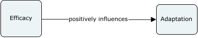 This Concept Map, created with IHMC CmapTools, has information related to: Untitled 1, Efficacy positively influences Adaptation