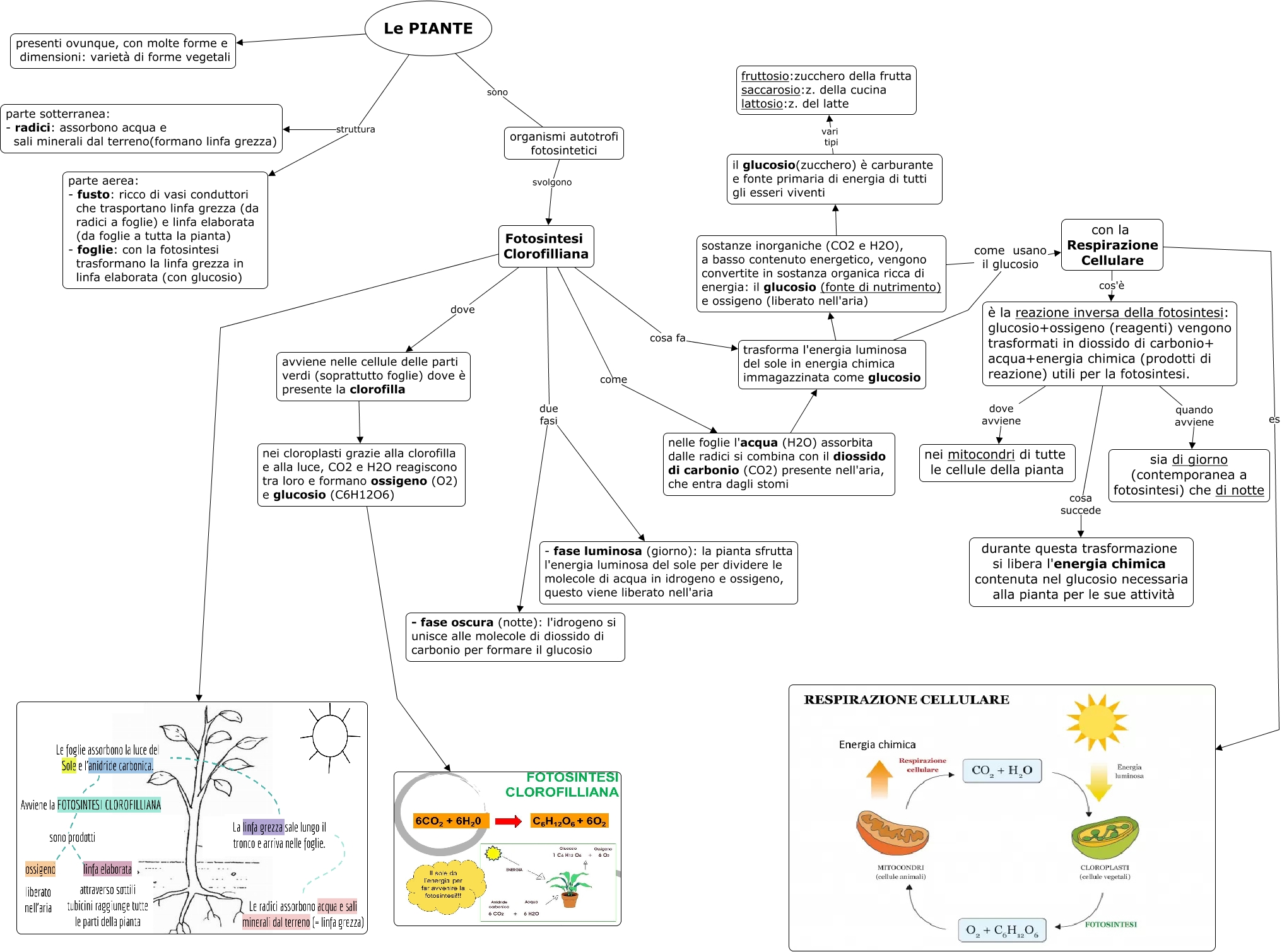 Questa Cmap, creata con IHMC CmapTools, contiene informazioni relative a: La Pianta_250925_ok, Le PIANTE sono organismi autotrofi fotosintetici, il glucosio(zucchero) è carburante e fonte primaria di energia di tutti gli esseri viventi vari tipi fruttosio:zucchero della frutta saccarosio:z. della cucina lattosio:z. del latte, Fotosintesi Clorofilliana dove avviene nelle cellule delle parti verdi (soprattutto foglie) dove è presente la clorofilla, trasforma l'energia luminosa del sole in energia chimica immagazzinata come glucosio come usano il glucosio con la Respirazione Cellulare, Le PIANTE struttura parte sotterranea: - radici: assorbono acqua e sali minerali dal terreno(formano linfa grezza), è la reazione inversa della fotosintesi: glucosio+ossigeno (reagenti) vengono trasformati in diossido di carbonio+ acqua+energia chimica (prodotti di reazione) utili per la fotosintesi. dove avviene nei mitocondri di tutte le cellule della pianta, nelle foglie l'acqua (H2O) assorbita dalle radici si combina con il diossido di carbonio (CO2) presente nell'aria, che entra dagli stomi ???? trasforma l'energia luminosa del sole in energia chimica immagazzinata come glucosio, è la reazione inversa della fotosintesi: glucosio+ossigeno (reagenti) vengono trasformati in diossido di carbonio+ acqua+energia chimica (prodotti di reazione) utili per la fotosintesi. cosa succede durante questa trasformazione si libera l'energia chimica contenuta nel glucosio necessaria alla pianta per le sue attività, sostanze inorganiche (CO2 e H2O), a basso contenuto energetico, vengono convertite in sostanza organica ricca di energia: il glucosio (fonte di nutrimento) e ossigeno (liberato nell'aria) come usano il glucosio con la Respirazione Cellulare, sostanze inorganiche (CO2 e H2O), a basso contenuto energetico, vengono convertite in sostanza organica ricca di energia: il glucosio (fonte di nutrimento) e ossigeno (liberato nell'aria) ???? il glucosio(zucchero) è carburante e fonte primaria di energia di tutti gli esseri viventi, Fotosintesi Clorofilliana ????, con la Respirazione Cellulare es, è la reazione inversa della fotosintesi: glucosio+ossigeno (reagenti) vengono trasformati in diossido di carbonio+ acqua+energia chimica (prodotti di reazione) utili per la fotosintesi. quando avviene sia di giorno (contemporanea a fotosintesi) che di notte, nei cloroplasti grazie alla clorofilla e alla luce, CO2 e H2O reagiscono tra loro e formano ossigeno (O2) e glucosio (C6H12O6) ????, Fotosintesi Clorofilliana due fasi - fase luminosa (giorno): la pianta sfrutta l'energia luminosa del sole per dividere le molecole di acqua in idrogeno e ossigeno, questo viene liberato nell'aria, organismi autotrofi fotosintetici svolgono Fotosintesi Clorofilliana, Fotosintesi Clorofilliana due fasi - fase oscura (notte): l'idrogeno si unisce alle molecole di diossido di carbonio per formare il glucosio, Le PIANTE struttura parte aerea: - fusto: ricco di vasi conduttori che trasportano linfa grezza (da radici a foglie) e linfa elaborata (da foglie a tutta la pianta) - foglie: con la fotosintesi trasformano la linfa grezza in linfa elaborata (con glucosio), con la Respirazione Cellulare cos'è è la reazione inversa della fotosintesi: glucosio+ossigeno (reagenti) vengono trasformati in diossido di carbonio+ acqua+energia chimica (prodotti di reazione) utili per la fotosintesi., trasforma l'energia luminosa del sole in energia chimica immagazzinata come glucosio ???? sostanze inorganiche (CO2 e H2O), a basso contenuto energetico, vengono convertite in sostanza organica ricca di energia: il glucosio (fonte di nutrimento) e ossigeno (liberato nell'aria)