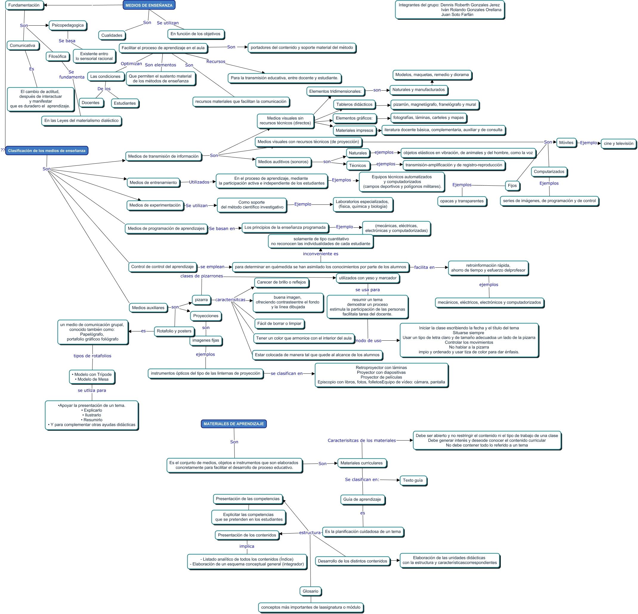 Este Cmap, tiene información relacionada con: MEDIOS_DE_ENSENAZA TAREA 2, Facilitar el proceso de aprendizaje en el aula Son recursos materiales que facilitan la comunicación, Medios de transmisión de información Son Medios visuales sin recursos técnicos (directos), Medios de experimentación Se utilizan Como soporte del método científico investigativo, utilizados con yeso y marcador se usa para resumir un tema demostrar un proceso estimula la participación de las personas facilitala tarea del docente., Glosario ???? conceptos más importantes de laasignatura o módulo, Medios de transmisión de información Son Medios visuales con recursos técnicos (de proyección), Facilitar el proceso de aprendizaje en el aula Son portadores del contenido y soporte material del método, MEDIOS DE ENSEÑANZA Fundamentación, Elementos tridimensionales: son Naturales y manufacturados, pizarra caracterisitcas Fácil de borrar o limpiar, Clasificación de los medios de enseñanza Son Medios de programación de aprendizajes, Facilitar el proceso de aprendizaje en el aula Recursos Para la transmisión educativa, entre docente y estudiante., Fijos Ejemplos opacas y transparentes, MATERIALES DE APRENDIZAJE Son Es el conjunto de medios, objetos e instrumentos que son elaborados concretamente para facilitar el desarrollo de proceso educativo., Medios auxiliares son pizarra, Materiales curriculares Se clasifican en: Texto guía, Es la planificación cuidadosa de un tema estructura Desarrollo de los distintos contenidos, Medios visuales sin recursos técnicos (directos) ???? Tableros didácticos, Medios visuales con recursos técnicos (de proyección) Son Computarizados, Medios visuales con recursos técnicos (de proyección) Son Móviles