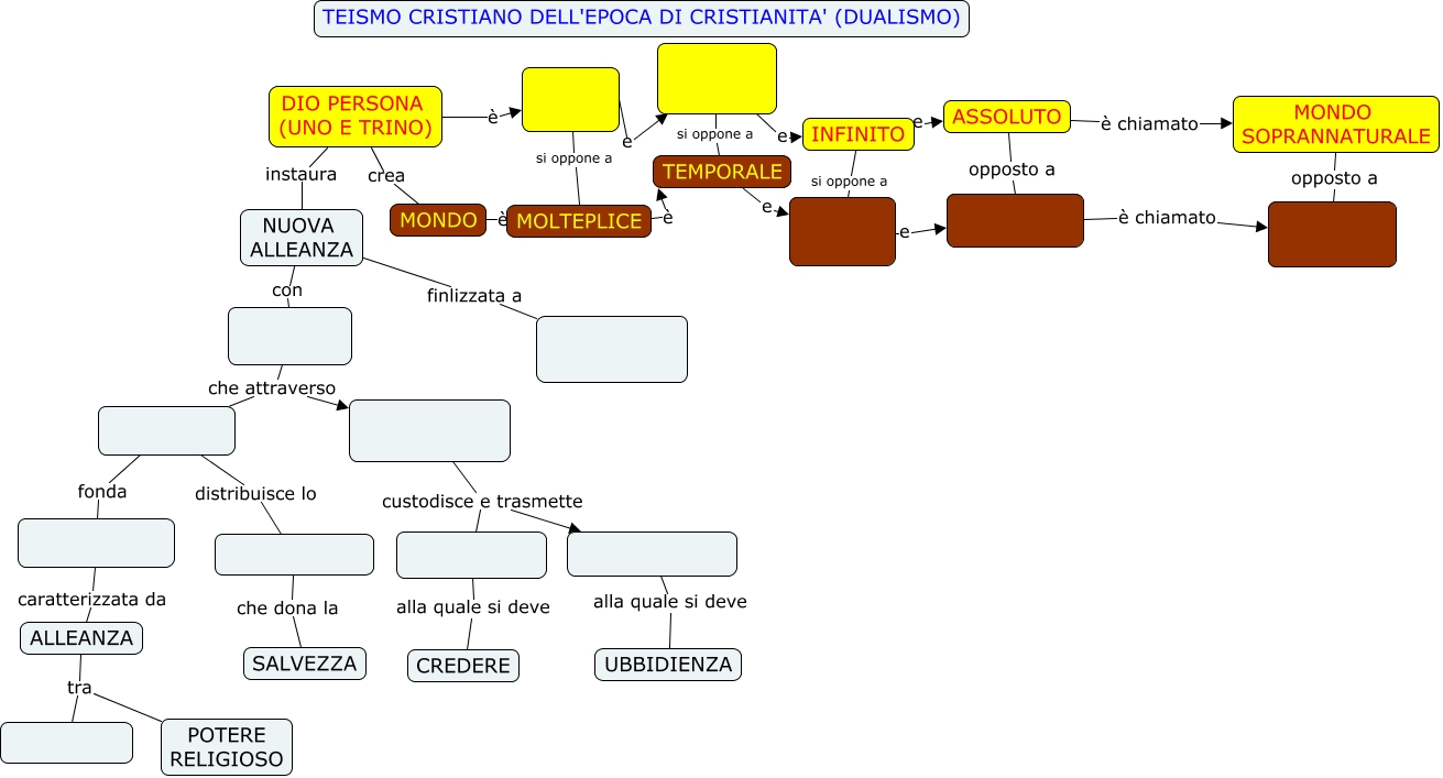 Questa Cmap, creata con IHMC CmapTools, contiene informazioni relative a: dualismo cristianità con parole omesse, custodisce e trasmette, ASSOLUTO opposto a, alla quale si deve CREDERE, DIO PERSONA (UNO E TRINO) instaura NUOVA ALLEANZA, si oppone a TEMPORALE, che attraverso, ALLEANZA tra POTERE RELIGIOSO, NUOVA ALLEANZA finlizzata a, e INFINITO, è chiamato, MONDO SOPRANNATURALE opposto a, che dona la SALVEZZA, MONDO è MOLTEPLICE, alla quale si deve UBBIDIENZA, caratterizzata da ALLEANZA, che attraverso, ALLEANZA tra, INFINITO e ASSOLUTO, MOLTEPLICE è TEMPORALE, TEMPORALE e
