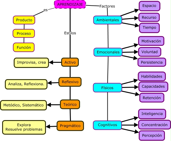 Este Cmap, tiene información relacionada con: Mapa Conceptual, Ambientales Tiempo, Reflexivo Teórico, Cognitivos Inteligencia, Cognitivos Concentración, Emocionales Persistencia, Físicos Retención, Ambientales Espacio, APRENDIZAJE Estilos Activo, APRENDIZAJE es Producto, Producto Función, Activo Improvisa, crea, Activo Reflexivo, Cognitivos Percepción, Pragmático Explora Resuelve problemas, Emocionales Físicos, Físicos Habilidades, Físicos Capacidades, APRENDIZAJE Factores Ambientales, Teórico Metódico, Sistemático, Ambientales Recurso