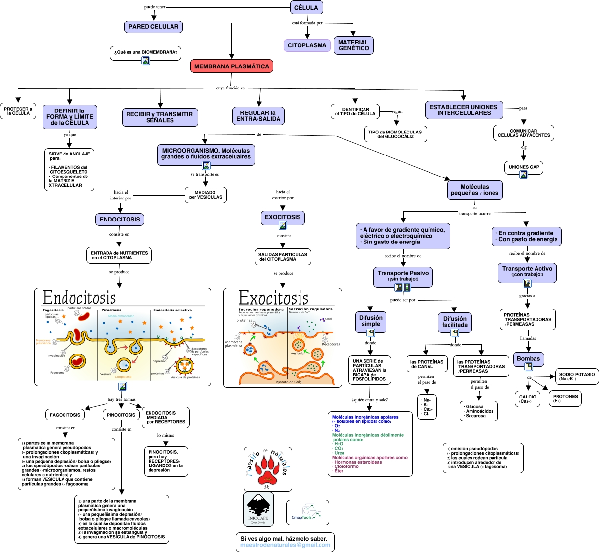 Este Cmap, tiene información relacionada con: Tema 05.07 El transporte a través de la membrana plasmática, CÉLULA está formada por MATERIAL GENÉTICO, ENDOCITOSIS consiste en ENTRADA de NUTRIENTES en el CITOPLASMA, DEFINIR la FORMA y LÍMITE de la CÉLULA ya que SIRVE de ANCLAJE para: · FILAMENTOS del CITOESQUELETO · Componentes de la MATRIZ E XTRACELULAR, ENDOCITOSIS MEDIADA por RECEPTORES lo mismo PINOCITOSIS, pero hay RECEPTORES/ LIGANDOS en la depresión, MICROORGANISMO, Moléculas grandes o fluidos extracelualres su transporte es MEDIADO por VESÍCULAS, ENTRADA de NUTRIENTES en el CITOPLASMA se produce, SALIDAS PARTICULAS del CITOPLASMA se produce, Bombas de SODIO-POTASIO (Na+/K+), Difusión simple donde UNA SERIE de PARTÍCULAS ATRAVIESAN la BICAPA de FOSFOLÍPIDOS, MEDIADO por VESÍCULAS hacia el interior por ENDOCITOSIS, MEDIADO por VESÍCULAS hacia el exterior por EXOCITOSIS, EXOCITOSIS consiste SALIDAS PARTICULAS del CITOPLASMA, · A favor de gradiente químico, eléctrico o electroquímico · Sin gasto de energía recibe el nombre de Transporte Pasivo (¡sin trabajo!), MEMBRANA PLASMÁTICA cuya función es ESTABLECER UNIONES INTERCELULARES, hay tres formas PINOCITOSIS, las PROTEÍNAS de CANAL permiten el paso de · Na+ · K+ · Ca2+ · Cl-, Difusión facilitada donde las PROTEÍNAS de CANAL, ESTABLECER UNIONES INTERCELULARES para COMUNICAR CÉLULAS ADYACENTES, MEMBRANA PLASMÁTICA cuya función es RECIBIR y TRANSMITIR SEÑALES, MEMBRANA PLASMÁTICA cuya función es DEFINIR la FORMA y LÍMITE de la CÉLULA