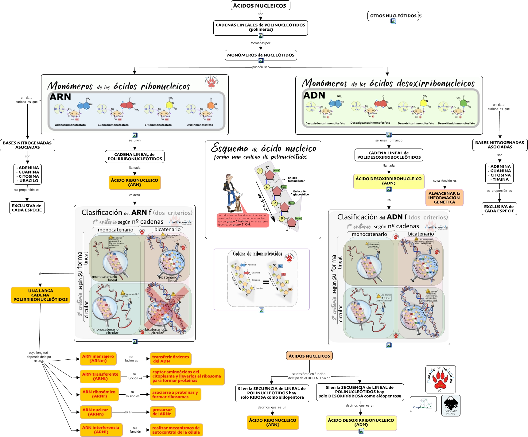 Este Cmap, tiene información relacionada con: 04.04 Clasificación de los ácidos nucleicos, ... que actúan como COENZIMAS e.g NADP, NUCLEÓTIDOS son CoA, ... almacenar y transportar energía dentro de la célula como ATP ADP AMP, UNA LARGA CADENA POLIRRIBONUCLEÓTIDOS cuya longitud depende del tipo de ARN ARN mensajero (ARNm), ... que actúan como COENZIMAS e.g CoA, BASES NITROGENADAS ASOCIADAS son · ADENINA · GUANINA · CITOSINA · TIMINA, NUCLEÓTIDOS sus funciones metabólicas .. ... mediadores en procesos hormonales, NUCLEÓTIDOS sus funciones metabólicas .. ... que actúan como COENZIMAS, ARN transferente (ARNt) su función es captar aminoácidos del citoplasma y llevarlos al ribosoma para formar proteínas, ... que actúan como COENZIMAS e.g FAD, se unen formando CADENA LINEAL de POLIDESOXIRRIBOCLEÓTIDOS, un dato curioso es que BASES NITROGENADAS ASOCIADAS, ARN mensajero (ARNm) su fución es transferir órdenes del ADN, MONÓMEROS de NUCLEÓTIDOS pueden ser, ARN nuclear (ARNn) es el precursor del ARNr, · ADENINA · GUANINA · CITOSINA · TIMINA su proporción es EXCLUSIVA de CADA ESPECIE, UNA LARGA CADENA POLIRRIBONUCLEÓTIDOS cuya longitud depende del tipo de ARN ARN transferente (ARNt), ÁCIDOS NUCLEICOS se clasifican en función del tipo de ALDOPENTOSA en SI en la SECUENCIA de LINEAL de POLINUCLEÓTIDOS hay solo RIBOSA como aldopentosa, se unen CADENA LINEAL de POLIRRIBONUCLEÓTIDOS, si UNA LARGA CADENA POLIRRIBONUCLEÓTIDOS