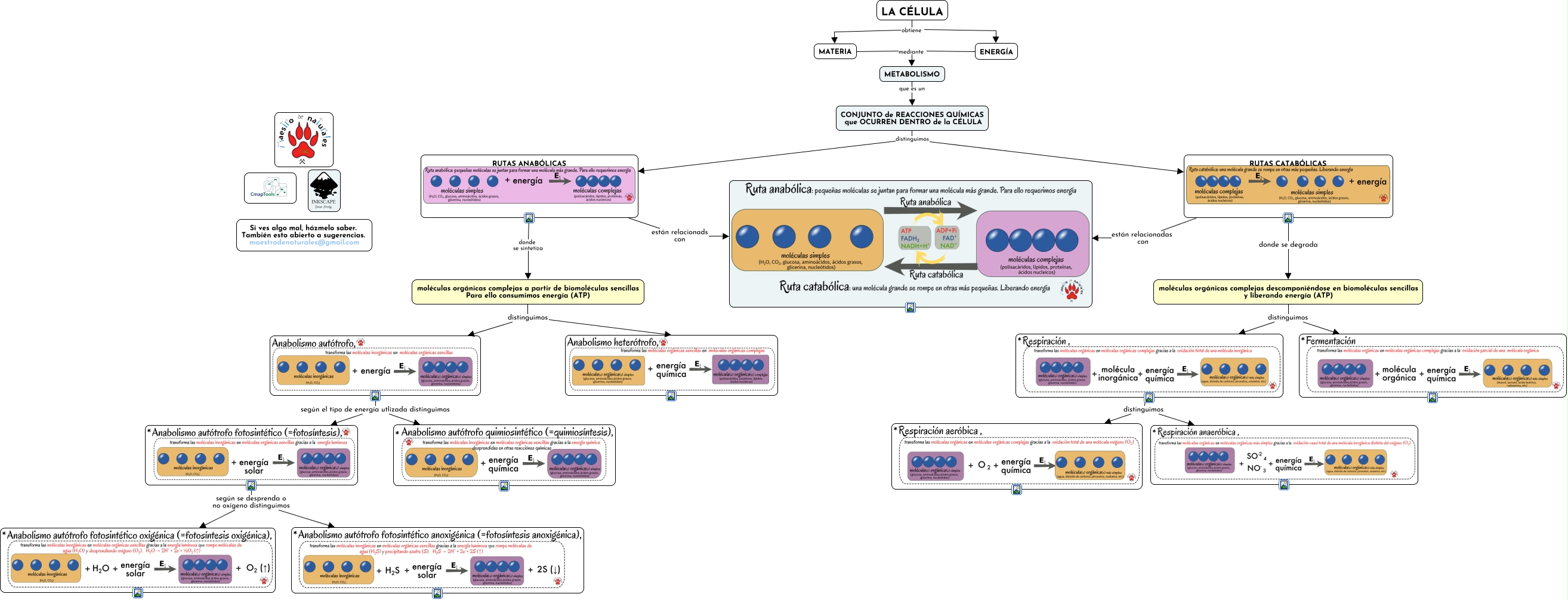 Este Cmap, tiene información relacionada con: Tema 09.01 Anabolismo, LA CÉLULA obtiene MATERIA, MATERIA mediante METABOLISMO, moléculas orgánicas complejas descomponiéndose en biomoléculas sencillas y liberando energía (ATP) distinguimos, METABOLISMO que es un CONJUNTO de REACCIONES QUÍMICAS que OCURREN DENTRO de la CÉLULA, distinguimos, según el tipo de energía utlizada distinguimos, según se desprenda o no oxígeno distinguimos, distinguimos, RUTAS CATABÓLICAS están relacionadas con, CONJUNTO de REACCIONES QUÍMICAS que OCURREN DENTRO de la CÉLULA distinguimos RUTAS ANABÓLICAS, según el tipo de energía utlizada distinguimos, RUTAS ANABÓLICAS donde se sintetiza moléculas orgánicas complejas a partir de biomoléculas sencillas Para ello consumimos energía (ATP), RUTAS ANABÓLICAS están relacionads con, moléculas orgánicas complejas a partir de biomoléculas sencillas Para ello consumimos energía (ATP) distinguimos, LA CÉLULA obtiene ENERGÍA, ENERGÍA mediante METABOLISMO, CONJUNTO de REACCIONES QUÍMICAS que OCURREN DENTRO de la CÉLULA distinguimos RUTAS CATABÓLICAS, según se desprenda o no oxígeno distinguimos, RUTAS CATABÓLICAS donde se degrada moléculas orgánicas complejas descomponiéndose en biomoléculas sencillas y liberando energía (ATP), moléculas orgánicas complejas descomponiéndose en biomoléculas sencillas y liberando energía (ATP) distinguimos