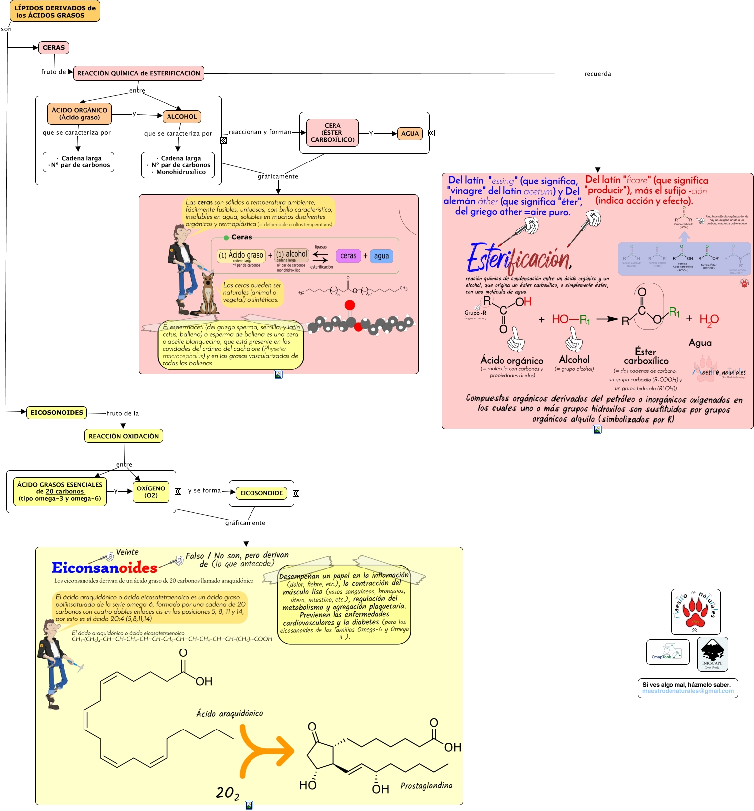 Este Cmap, tiene información relacionada con: 2.08.3 Lípidos derivados de los ácidos grasos, LÍPIDOS DERIVADOS de los ÁCIDOS GRASOS son CERAS, ???? gráficamente, CERAS fruto de REACCIÓN QUÍMICA de ESTERIFICACIÓN, ???? gráficamente, ÁCIDO ORGÁNICO (Ácido graso) y ALCOHOL, ÁCIDO ORGÁNICO (Ácido graso) que se caracteriza por · Cadena larga ·Nº par de carbonos, ???? gráficamente, REACCIÓN OXIDACIÓN entre ÁCIDO GRASOS ESENCIALES de 20 carbonos (tipo omega-3 y omega-6), REACCIÓN QUÍMICA de ESTERIFICACIÓN entre ÁCIDO ORGÁNICO (Ácido graso), ÁCIDO GRASOS ESENCIALES de 20 carbonos (tipo omega-3 y omega-6) y OXÍGENO (O2), ???? y se forma EICOSONOIDE, ÁCIDOS GRASOS de cadena larga que REACCIONAN con ALCOHOLES de cadena larga gráficamente, CERA (ÉSTER CARBOXÍLICO) Y AGUA, EICOSONOIDES fruto de la REACCIÓN OXIDACIÓN, ÁCIDOS GRASOS de cadena larga que REACCIONAN con ALCOHOLES de cadena larga reaccionan y forman CERA (ÉSTER CARBOXÍLICO), REACCIÓN QUÍMICA de ESTERIFICACIÓN entre ALCOHOL, LÍPIDOS DERIVADOS de los ÁCIDOS GRASOS son EICOSONOIDES, REACCIÓN OXIDACIÓN entre OXÍGENO (O2), ALCOHOL que se caracteriza por · Cadena larga · Nº par de carbonos · Monohidroxílico, REACCIÓN QUÍMICA de ESTERIFICACIÓN recuerda