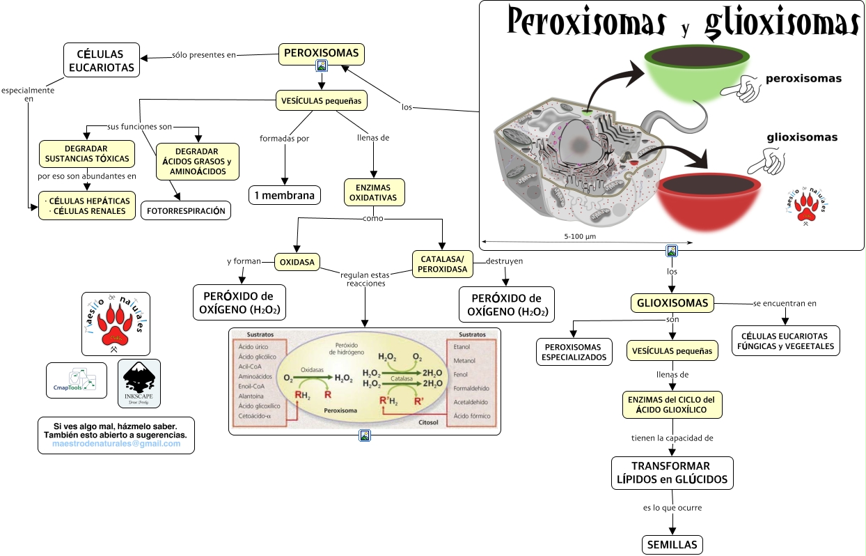 Este Cmap, tiene información relacionada con: Tema 06.06 Glioxisomas, CATALASA/ PEROXIDASA regulan estas reacciones, VESÍCULAS pequeñas formadas por 1 membrana, ENZIMAS del CICLO del ÁCIDO GLIOXÍLICO tienen la capacidad de TRANSFORMAR LÍPIDOS en GLÚCIDOS, OXIDASA y forman PERÓXIDO de OXÍGENO (H2O2), los GLIOXISOMAS, VESÍCULAS pequeñas llenas de ENZIMAS del CICLO del ÁCIDO GLIOXÍLICO, PEROXISOMAS sólo presentes en CÉLULAS EUCARIOTAS, VESÍCULAS pequeñas sus funciones son FOTORRESPIRACIÓN, PEROXISOMAS son VESÍCULAS pequeñas, CATALASA/ PEROXIDASA destruyen PERÓXIDO de OXÍGENO (H2O2), VESÍCULAS pequeñas sus funciones son DEGRADAR ÁCIDOS GRASOS y AMINOÁCIDOS, ENZIMAS OXIDATIVAS como CATALASA/ PEROXIDASA, TRANSFORMAR LÍPIDOS en GLÚCIDOS es lo que ocurre SEMILLAS, CÉLULAS EUCARIOTAS especialmente en · CÉLULAS HEPÁTICAS · CÉLULAS RENALES, VESÍCULAS pequeñas llenas de ENZIMAS OXIDATIVAS, VESÍCULAS pequeñas sus funciones son DEGRADAR SUSTANCIAS TÓXICAS, GLIOXISOMAS son VESÍCULAS pequeñas, ENZIMAS OXIDATIVAS como OXIDASA, GLIOXISOMAS son PEROXISOMAS ESPECIALIZADOS, GLIOXISOMAS se encuentran en CÉLULAS EUCARIOTAS FÚNGICAS y VEGEETALES