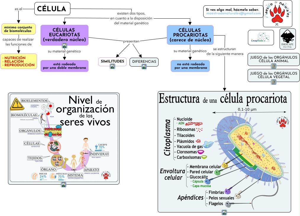 Este Cmap, tiene información relacionada con: Tema 01.04 La célula procariota, CÉLULAS EUCARIOTAS (verdadero núcleo) su material genético está rodeado por una doble membrana, CÉLULAS PROCARIOTAS (carece de núcleo) su material genético no está rodeado por una membrana, CÉLULAS EUCARIOTAS (verdadero núcleo) presentan SIMILITUDES, CÉLULA existen dos tipos, en cuanto a la disposición del material genético CÉLULAS EUCARIOTAS (verdadero núcleo), CÉLULAS EUCARIOTAS (verdadero núcleo) presentan DIFERENCIAS, CÉLULA es el mínimo conjunto de biomoléculas, CÉLULAS PROCARIOTAS (carece de núcleo) presentan DIFERENCIAS, CÉLULA existen dos tipos, en cuanto a la disposición del material genético CÉLULAS PROCARIOTAS (carece de núcleo), CÉLULAS PROCARIOTAS (carece de núcleo) presentan SIMILITUDES, CÉLULAS PROCARIOTAS (carece de núcleo) se estructuran de la siguiente manera, mínimo conjunto de biomoléculas capaces de realizar las funciones de · NUTRICIÓN · RELACIÓN · REPRODUCCIÓN
