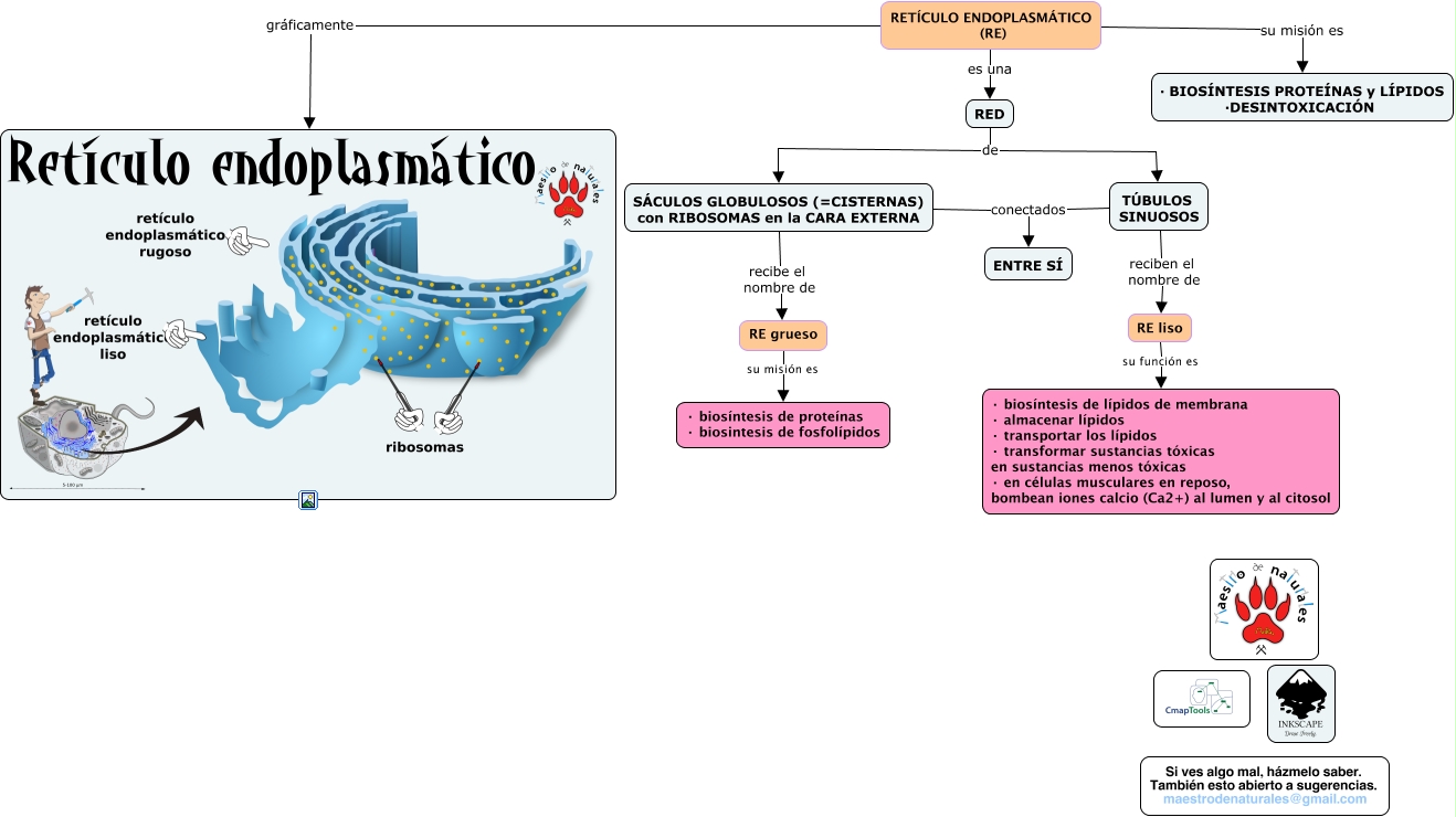 Este Cmap, tiene información relacionada con: Tema 06.03 Retículo endoplasmático, SÁCULOS GLOBULOSOS (=CISTERNAS) con RIBOSOMAS en la CARA EXTERNA recibe el nombre de RE grueso, RE liso su función es · biosíntesis de lípidos de membrana · almacenar lípidos · transportar los lípidos · transformar sustancias tóxicas en sustancias menos tóxicas · en células musculares en reposo, bombean iones calcio (Ca2+) al lumen y al citosol, RED de SÁCULOS GLOBULOSOS (=CISTERNAS) con RIBOSOMAS en la CARA EXTERNA, RETÍCULO ENDOPLASMÁTICO (RE) es una RED, TÚBULOS SINUOSOS conectados ENTRE SÍ, RETÍCULO ENDOPLASMÁTICO (RE) su misión es · BIOSÍNTESIS PROTEÍNAS y LÍPIDOS ·DESINTOXICACIÓN, RED de TÚBULOS SINUOSOS, SÁCULOS GLOBULOSOS (=CISTERNAS) con RIBOSOMAS en la CARA EXTERNA conectados ENTRE SÍ, RE grueso su misión es · biosíntesis de proteínas · biosintesis de fosfolípidos, RETÍCULO ENDOPLASMÁTICO (RE) gráficamente, TÚBULOS SINUOSOS reciben el nombre de RE liso