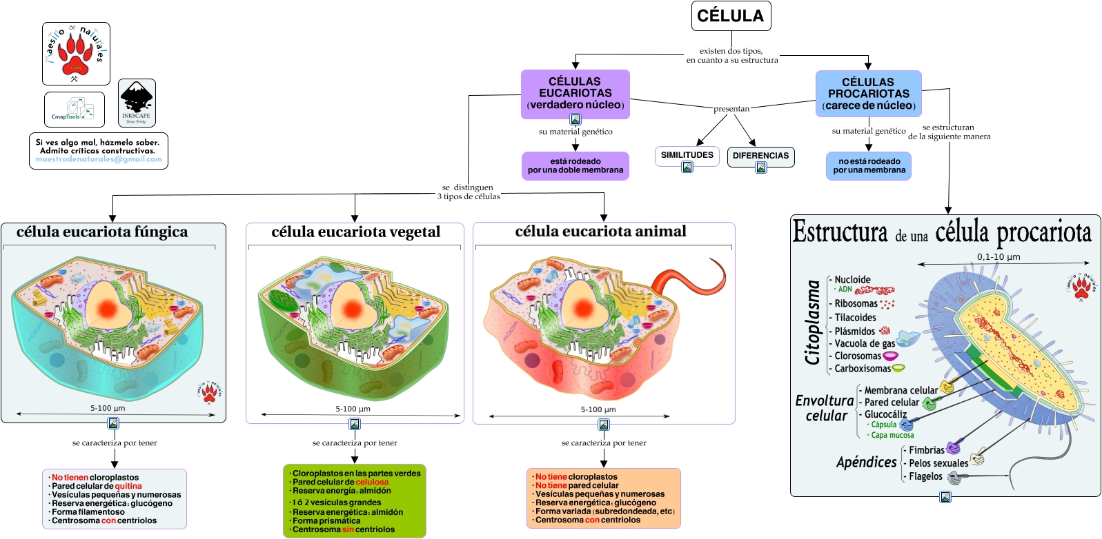 Este Cmap, tiene información relacionada con: Tema 03.03.01 La célula eucariota, CÉLULAS EUCARIOTAS (verdadero núcleo) presentan SIMILITUDES, CÉLULA existen dos tipos, en cuanto a su estructura CÉLULAS EUCARIOTAS (verdadero núcleo), CÉLULAS EUCARIOTAS (verdadero núcleo) su material genético está rodeado por una doble membrana, CÉLULAS EUCARIOTAS (verdadero núcleo) presentan DIFERENCIAS, CÉLULAS PROCARIOTAS (carece de núcleo) presentan SIMILITUDES, CÉLULAS EUCARIOTAS (verdadero núcleo) se distinguen 3 tipos de células, se caracteriza por tener · No tienen cloroplastos · Pared celular de quitina · Vesículas pequeñas y numerosas · Reserva energética: glucógeno · Forma filamentoso · Centrosoma con centriolos, se caracteriza por tener · No tiene cloroplastos · No tiene pared celular · Vesículas pequeñas y numerosas · Reserva energética: glucógeno · Forma variada (subredondeada, etc) · Centrosoma con centriolos, CÉLULAS PROCARIOTAS (carece de núcleo) se estructuran de la siguiente manera, CÉLULA existen dos tipos, en cuanto a su estructura CÉLULAS PROCARIOTAS (carece de núcleo), CÉLULAS EUCARIOTAS (verdadero núcleo) se distinguen 3 tipos de células, se caracteriza por tener · Cloroplastos en las partes verdes · Pared celular de celulosa · Reserva energía: almidón · 1 ó 2 vesículas grandes · Reserva energética: almidón · Forma prismática · Centrosoma sin centriolos, CÉLULAS PROCARIOTAS (carece de núcleo) presentan DIFERENCIAS, CÉLULAS EUCARIOTAS (verdadero núcleo) se distinguen 3 tipos de células, CÉLULAS PROCARIOTAS (carece de núcleo) su material genético no está rodeado por una membrana