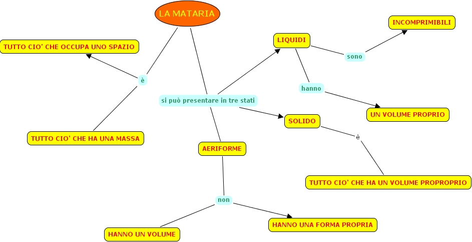 LA MATARIA � TUTTO CIO' CHE HA UNA MASSA, LA MATARIA � TUTTO CIO' CHE OCCUPA UNO SPAZIO, SOLIDO � TUTTO CIO' CHE HA UN VOLUME PROPROPRIO, LA MATARIA si pu� presentare in tre stati AERIFORME, LA MATARIA si pu� presentare in tre stati LIQUIDI, LA MATARIA si pu� presentare in tre stati SOLIDO, LIQUIDI hanno UN VOLUME PROPRIO, AERIFORME non HANNO UN VOLUME, AERIFORME non HANNO UNA FORMA PROPRIA, LIQUIDI sono INCOMPRIMIBILI