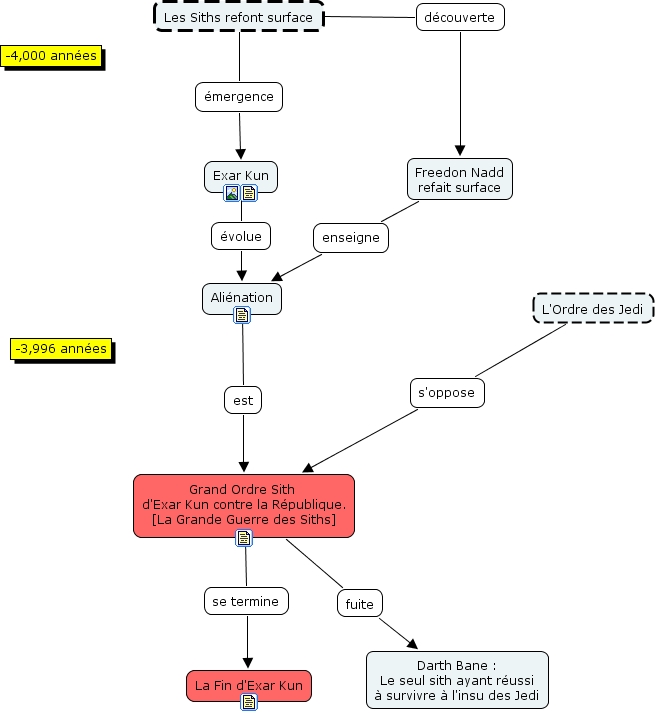 La guerre des Siths, Les Siths refont surface découverte Freedon Nadd refait surface, L'Ordre des Jedi s'oppose Grand Ordre Sith d'Exar Kun contre la République. [La Grande Guerre des Siths], Les Siths refont surface émergence Exar Kun, Les Siths refont surface découverte Freedon Nadd refait surface, Les Siths refont surface émergence Exar Kun, Les Siths refont surface émergence Exar Kun, Freedon Nadd refait surface enseigne Aliénation, Grand Ordre Sith d'Exar Kun contre la République. [La Grande Guerre des Siths] fuite Darth Bane : Le seul sith ayant réussi à survivre à l'insu des Jedi, Aliénation est Grand Ordre Sith d'Exar Kun contre la République. [La Grande Guerre des Siths], Grand Ordre Sith d'Exar Kun contre la République. [La Grande Guerre des Siths] se termine La Fin d'Exar Kun