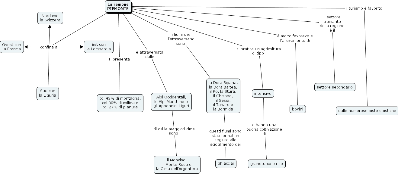la regione piemonte, bovini, col 43% di montagna, col 30% di collina e col 27% di pianura, dalle numerose piste sciistiche, granoturco e riso, ghiacciai, est con la lombardia, intensivo, nord con la svizzera, la regione piemonte, il monviso, il monte rosa e la cima dell'argentera, alpi occidentali, le alpi marittime e gli appennini liguri, la dora riparia, la dora baltea, il po, la stura, il chisone, il sesia, il tanaro e la bormida, settore secondario, sud con la liguria, ovest con la francia
