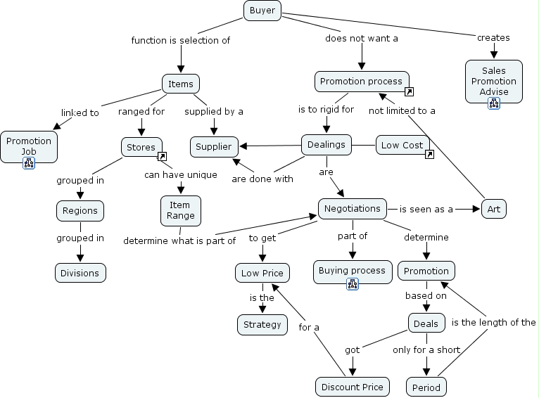b3-Buyer, Art not limited to a Promotion process, Negotiations is seen as a Art, Promotion based on Deals, Deals only for a short Period, Items ranged for Stores, Dealings are done with Supplier, Dealings are Negotiations, Stores can have unique Item Range, Low Cost ???? Supplier, Discount Price for a Low Price