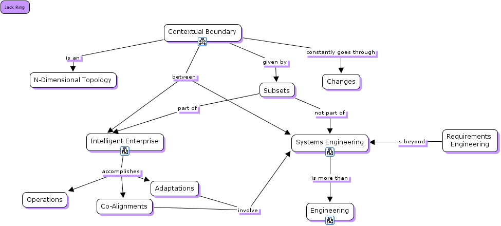 Contextual Boundaries, Intelligent Enterprise accomplishes Adaptations, Contextual Boundary given by Subsets, Subsets not part of Systems Engineering, Adaptations involve Systems Engineering, Contextual Boundary is an N-Dimensional Topology, Requirements Engineering is beyond Systems Engineering, Contextual Boundary between Systems Engineering, Systems Engineering is more than Engineering, Intelligent Enterprise accomplishes Co-Alignments, Subsets part of Intelligent Enterprise