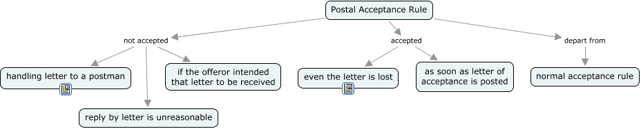Postal Rule, Postal Acceptance Rule accepted as soon as letter of acceptance is posted, Postal Acceptance Rule not accepted handling letter to a postman, Postal Acceptance Rule not accepted reply by letter is unreasonable, Postal Acceptance Rule not accepted if the offeror intended that letter to be received, Postal Acceptance Rule depart from normal acceptance rule, Postal Acceptance Rule accepted even the letter is lost