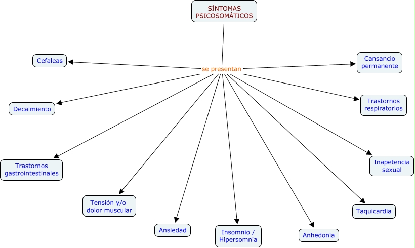 Síntomas Psicosomáticos, SÍNTOMAS PSICOSOMÁTICOS se presentan Cansancio permanente, SÍNTOMAS PSICOSOMÁTICOS se presentan Trastornos gastrointestinales, SÍNTOMAS PSICOSOMÁTICOS se presentan Cefaleas, SÍNTOMAS PSICOSOMÁTICOS se presentan Ansiedad, SÍNTOMAS PSICOSOMÁTICOS se presentan Tensión y/o dolor muscular, SÍNTOMAS PSICOSOMÁTICOS se presentan Decaimiento, SÍNTOMAS PSICOSOMÁTICOS se presentan Trastornos respiratorios, SÍNTOMAS PSICOSOMÁTICOS se presentan Anhedonia, SÍNTOMAS PSICOSOMÁTICOS se presentan Insomnio / Hipersomnia, SÍNTOMAS PSICOSOMÁTICOS se presentan Inapetencia sexual