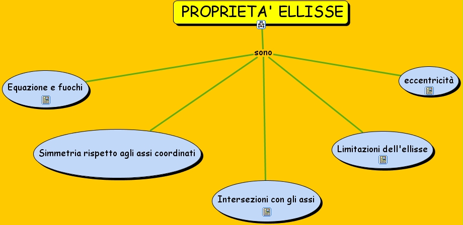 PROPRIETA' ELLISSE sono Intersezioni con gli assi, PROPRIETA' ELLISSE sono Limitazioni dell'ellisse, PROPRIETA' ELLISSE sono Simmetria rispetto agli assi coordinati, PROPRIETA' ELLISSE sono Equazione e fuochi, PROPRIETA' ELLISSE sono eccentricit�