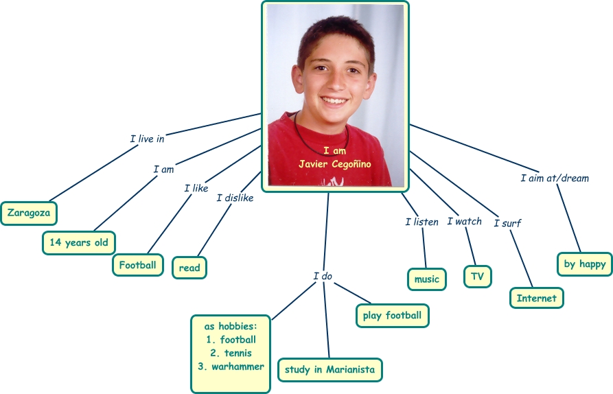 p_cegonino, I am Javier Cegoñino I surf Internet, I am Javier Cegoñino I watch TV, I am Javier Cegoñino I aim at/dream by happy, I am Javier Cegoñino I live in Zaragoza, I am Javier Cegoñino I do as hobbies: 1. football 2. tennis 3. warhammer, I am Javier Cegoñino I do play football, I am Javier Cegoñino I like Football, I am Javier Cegoñino I am 14 years old, I am Javier Cegoñino I do study in Marianista, I am Javier Cegoñino I listen music