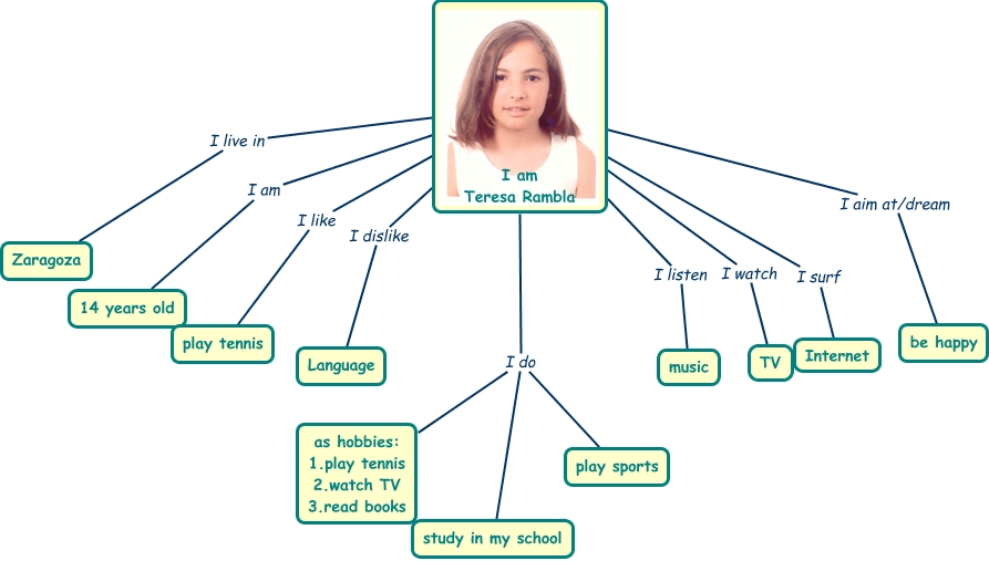p_rambla, I am Teresa Rambla I watch TV, I am Teresa Rambla I surf Internet, I am Teresa Rambla I live in Zaragoza, I am Teresa Rambla I aim at/dream be happy, I am Teresa Rambla I do as hobbies: 1.play tennis 2.watch TV 3.read books, I am Teresa Rambla I am 14 years old, I am Teresa Rambla I do play sports, I am Teresa Rambla I like play tennis, I am Teresa Rambla I listen music, I am Teresa Rambla I do study in my school