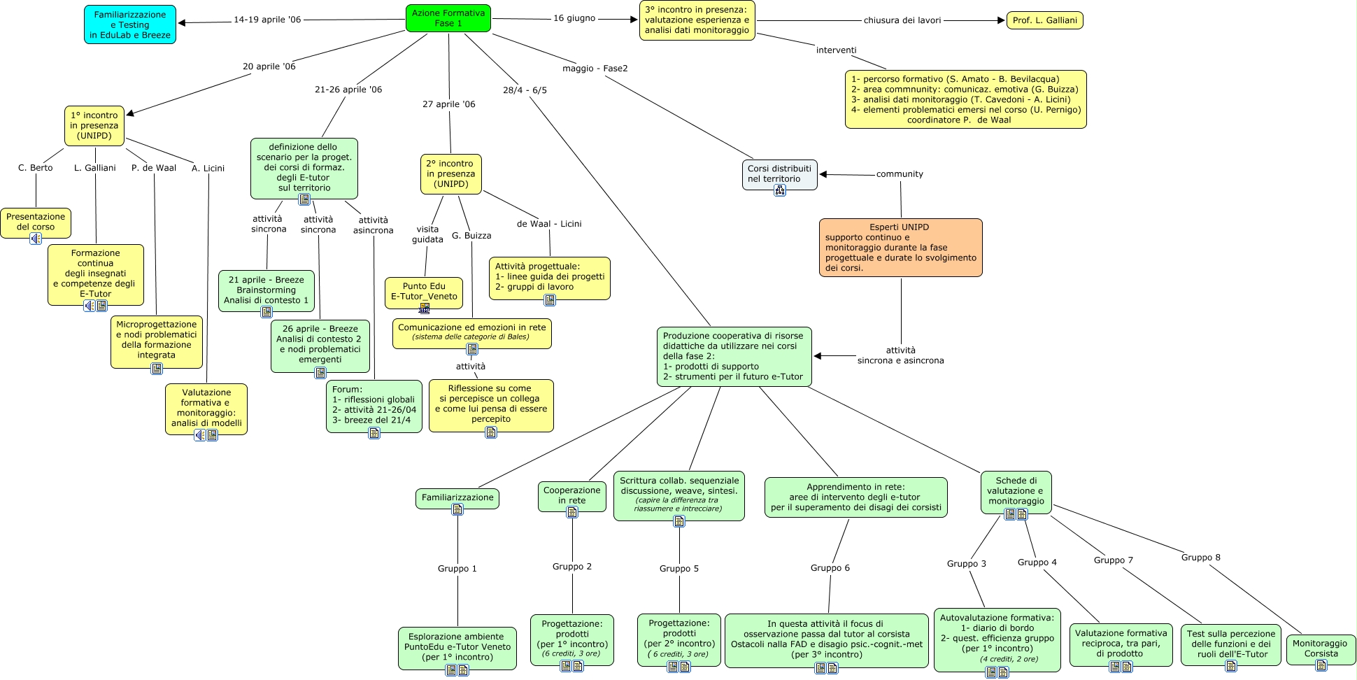 formazione_fase_1, 1° incontro in presenza (UNIPD) P. de Waal Microprogettazione e nodi problematici della formazione integrata, 1° incontro in presenza (UNIPD) L. Galliani Formazione continua degli insegnati e competenze degli E-Tutor, Produzione cooperativa di risorse didattiche da utilizzare nei corsi della fase 2: 1- prodotti di supporto 2- strumenti per il futuro e-Tutor ???? Cooperazione in rete, Azione Formativa Fase 1 20 aprile '06 1° incontro in presenza (UNIPD), Azione Formativa Fase 1 27 aprile '06 2° incontro in presenza (UNIPD), Esperti UNIPD supporto continuo e monitoraggio durante la fase progettuale e durate lo svolgimento dei corsi. community Corsi distribuiti nel territorio, Schede di valutazione e monitoraggio Gruppo 4 Valutazione formativa reciproca, tra pari, di prodotto, Schede di valutazione e monitoraggio Gruppo 8 Monitoraggio Corsista, Esperti UNIPD supporto continuo e monitoraggio durante la fase progettuale e durate lo svolgimento dei corsi. attività sincrona e asincrona Produzione cooperativa di risorse didattiche da utilizzare nei corsi della fase 2: 1- prodotti di supporto 2- strumenti per il futuro e-Tutor, Azione Formativa Fase 1 21-26 aprile '06 definizione dello scenario per la proget. dei corsi di formaz. degli E-tutor sul territorio