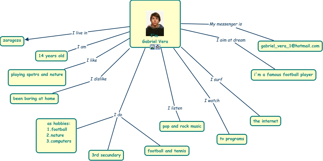 p_vera, I'm Gabriel Vera I dislike been boring at home, I'm Gabriel Vera I do as hobbies: 1.football 2.nature 3.computers, I'm Gabriel Vera I watch tv programs, I'm Gabriel Vera I live in zaragoza, I'm Gabriel Vera I like playing spotrs and nature, I'm Gabriel Vera My messenger is gabriel_vera_1@hotmail.com, I'm Gabriel Vera I am 14 years old, I'm Gabriel Vera I surf the internet, I'm Gabriel Vera I do football and tennis, I'm Gabriel Vera I listen pop and rock music