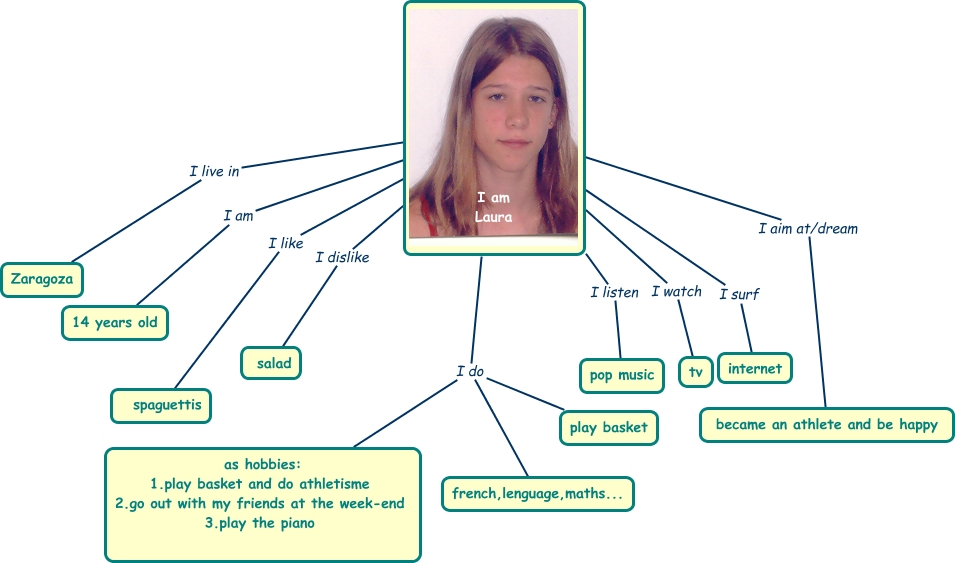 p_carballeda, I am Laura I watch tv, I am Laura I surf internet, I am Laura I live in Zaragoza, I am Laura I aim at/dream became an athlete and be happy, I am Laura I do as hobbies: 1.play basket and do athletisme 2.go out with my friends at the week-end 3.play the piano, I am Laura I am 14 years old, I am Laura I like spaguettis, I am Laura I do play basket, I am Laura I listen pop music, I am Laura I do french,lenguage,maths...
