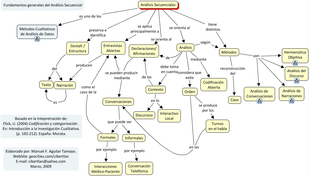 Este Cmap, tiene información relacionada con: Análisis Secuenciales, Análisis de Declaraciones/ Afirmaciones, Análisis debe toma en cuenta Contexto, Contexto en lo Discursivo, Narración es Texto, Métodos reconstrucción del Caso, Orden en las Conversaciones, Orden se produce por los Turnos en el habla, Métodos son: Hermenútica Objetiva, Turnos en el habla en las Conversaciones, Formales como el caso de la Entrevistas Abiertas, Métodos son: Análisis del Discurso, Gestalt / Estructura del Texto, Declaraciones/ Afirmaciones se pueden producir mediante Conversaciones, Gestalt / Estructura del Narración, Análisis Secuenciales se orienta al Análisis, Análisis considera que exite Orden, Métodos son: Análisis de Conversaciones, Análisis Secuenciales se aplica principalmente a Entrevistas Abiertas, Declaraciones/ Afirmaciones se pueden producir mediante Entrevistas Abiertas, Conversaciones que puede ser Formales
