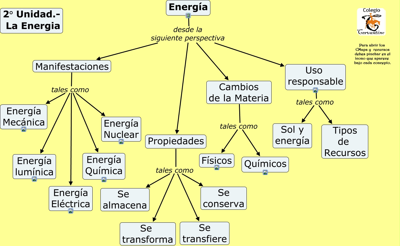 Este Cmap, tiene información relacionada con: la energia, Manifestaciones tales como Energía Química, Manifestaciones tales como Energía lumínica, Energía desde la siguiente perspectiva Manifestaciones, Cambios de la Materia tales como Físicos, Energía desde la siguiente perspectiva Uso responsable, Propiedades tales como Se almacena, Energía desde la siguiente perspectiva Cambios de la Materia, Propiedades tales como Se transfiere, Manifestaciones tales como Energía Eléctrica, Uso responsable tales como Tipos de Recursos, Uso responsable tales como Sol y energía, Manifestaciones tales como Energía Nuclear, Propiedades tales como Se conserva, Energía desde la siguiente perspectiva Propiedades, Propiedades tales como Se transforma, Manifestaciones tales como Energía Mecánica, Cambios de la Materia tales como Químicos